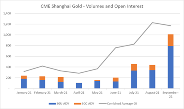 投資者同時積極利用黃金期貨合約,規避可能的滯脹及通脹風險。在市場持續買入下,芝商所旗下的上海黃金合約(代碼SGU和SGC),從1月21日到9月21日,買賣差價大幅收緊,訂單規模增加了約4倍。