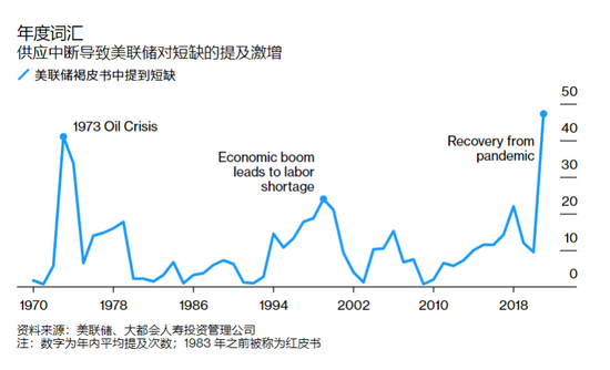 根據大都會投資管理公司(MetLife Investment Management)的數據,褐皮書中"短缺"一詞的使用率約為1970年代初以來最高。