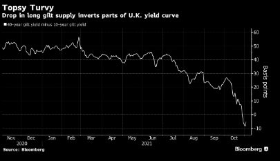 "從現在到2022年4月,市場必須消化英國國債供應的極端稀缺,但我們的央行從現在到12月初還要從市場中拿走200億英鎊國債,會加劇這個問題,"abrdn plc駐愛丁堡的投資總監Aaron Rock表示。 "坦率地說,這毫無意義。"