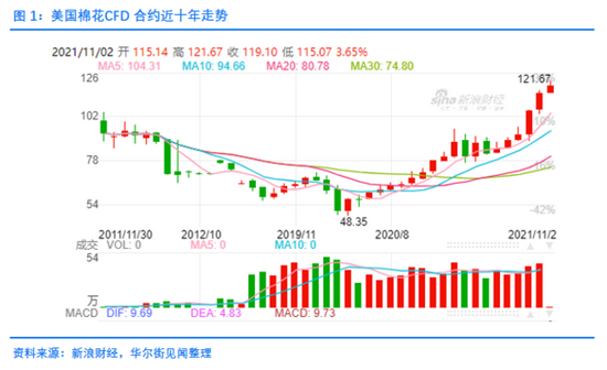 11月2日,美棉CFD合約盤中一度突破1.2美元/磅,價格飆升至10年高點附近。