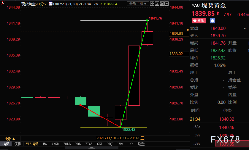 北京時間週三(11月10日)21:30,美國公佈10月通脹數據,表現遠超預期和前值,美聯儲面臨了更大的加快收緊貨幣政策壓力。 截至發稿,現貨黃金大漲逾15美元至1841.76美元/盎司;美元指數跳漲近20點至94.440。