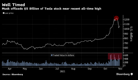 一切都關於時機。 特斯拉(1063.51-4.44, -0.42%, )首席執行官伊隆·馬斯克在該公司股價創出紀錄高位的幾天后賣出了50億美元的股票。