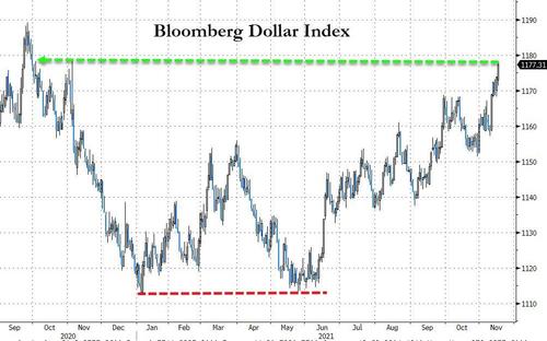 財聯社(上海,編輯 瀟湘)訊,美債收益率攜手美元指數一路走高,似乎已經成為了過去一周全球金融市場的"新常態"。 隔夜(11月16日)兩者繼續同步上漲,美元指數更是強勢觸及了16個月高位。 週二公佈的經濟數據顯示,美國10月零售銷售增幅超過預期,與此同時美聯儲鷹派官員布拉德再度大放厥詞,令市場愈發相信美聯儲在高通脹的威脅下可能加速緊縮進程。