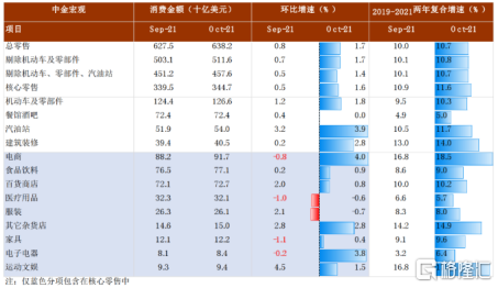另一方面,尽管消费者信心不振,美国零售数据仍然坚挺,10月零售销售环比增长1.7%,高于前值0.7%,不包括汽车、餐馆酒吧、汽油、建筑装修在内的核心零售也增长了1.6%。这也是美国零售数据连续第三个月呈现增长态势。不可否认,零售数据较好部分是因为涨价因素,但无论是价格还是数量上升,都将增加美联储退出货币宽松的压力。