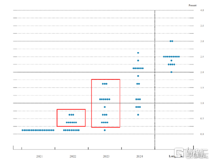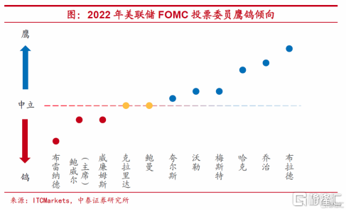从美联储9月点阵图看,当前赞成和反对2022年加息一次的官员比例为9比9,而鲍威尔本人大概率还在不赞成加息的官员之列。如果明年鲍威尔的态度由“鸽派”转向“中性”,联储加息概率将提高。