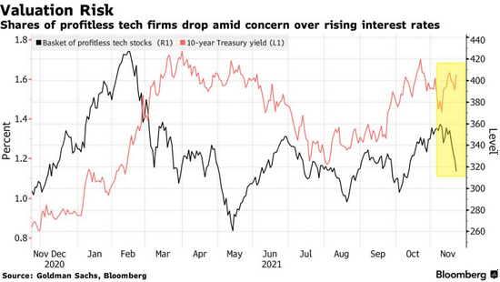 直到最近,利潤不足才開始讓投資者認為科技股的高價是不太合理的。 如今,在美國總統拜登提名鮑威爾連任美聯儲主席后,債券市場開始考慮明年加息的可能性,投資者們可能也需要重新考慮他們投資的方向。 上週五,以大衛·考斯汀(David Kostin)為首的高盛策略師們在報告中寫道: