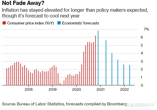 一年前,經濟學家預測美國2021年的通脹率為2%。 美聯儲主席鮑威爾的"通脹暫時論"得到了廣泛認同。