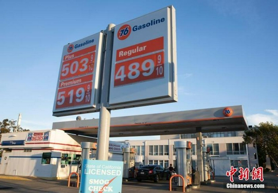 資料圖:美國加州聖馬刁縣一處加油站。 中新社記者 劉關關 攝