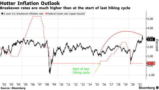"我們認為,利率市場預計美聯儲在這個週期內的加息幅度有限。 目前,市場似乎認為央行可能過早加息,從而拖累本已脆弱的經濟復甦,但這種情況可能會在2022年年中發生轉變。 ”