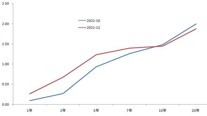 理論上來說,收益率曲線顯示了國債不同期限下的借貸利率(從隔夜、1月、1年到10 年甚至更長)。 通常情況下,收益率曲線通常是向上傾斜的。 也就是放貸的時間越久,不確定性越高,獲得的回報率越高。