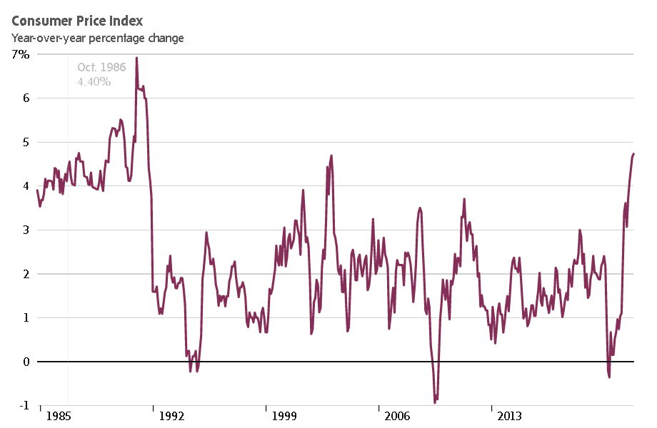 4.72%的通脹率是1991年9月以來的最高值,創下了30年來的新高。