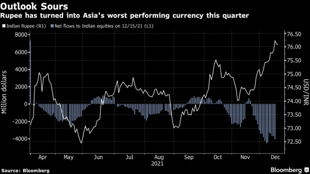 目前,對奧密克戎(omicron)病毒變種的擔憂正在衝擊包括印度在內的全球市場。 創紀錄新高的貿易逆差,以及印度央行與美聯儲的政策分歧也削弱了盧比的套利吸引力。