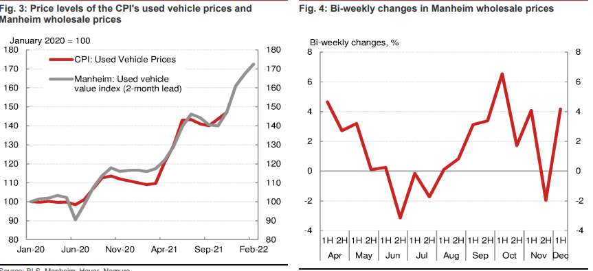 然而,消除短期偏差后,CPI二手車價格和曼海姆數據同步移動表明,這一組成部分可能會在幾個月內持續推高核心CPI。