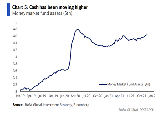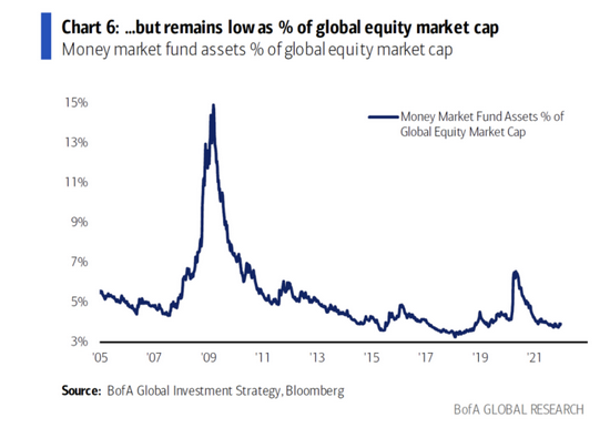 另外,最近幾周貨幣市場基金持續走高,但它在全球股市總市值中所佔的比重仍相對較小,且許多分析師多次預測場外資金更可能進入股市。