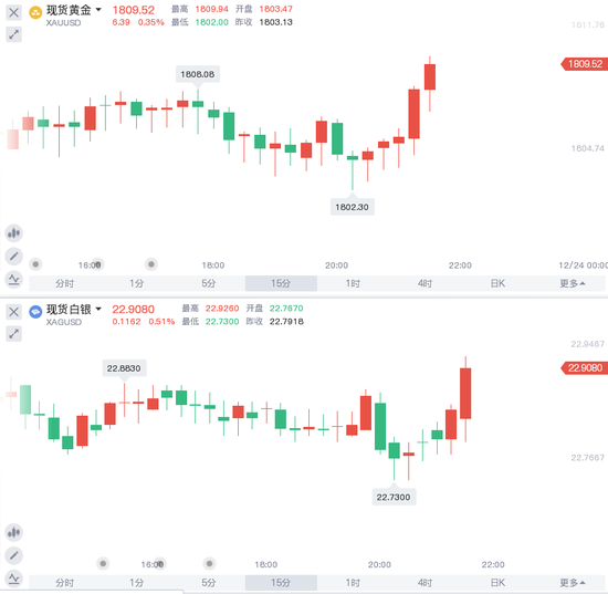 數據公佈后,現貨黃金小幅上揚3美元,逼近1810美元關口。