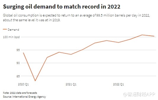 隨著經濟開始從疫情中復甦,全球石油需求在2021年大幅回升。 儘管人們為緩解氣候變化而努力降低化石燃料消費,但全球石油總消費量可能在2022年創下新紀錄。