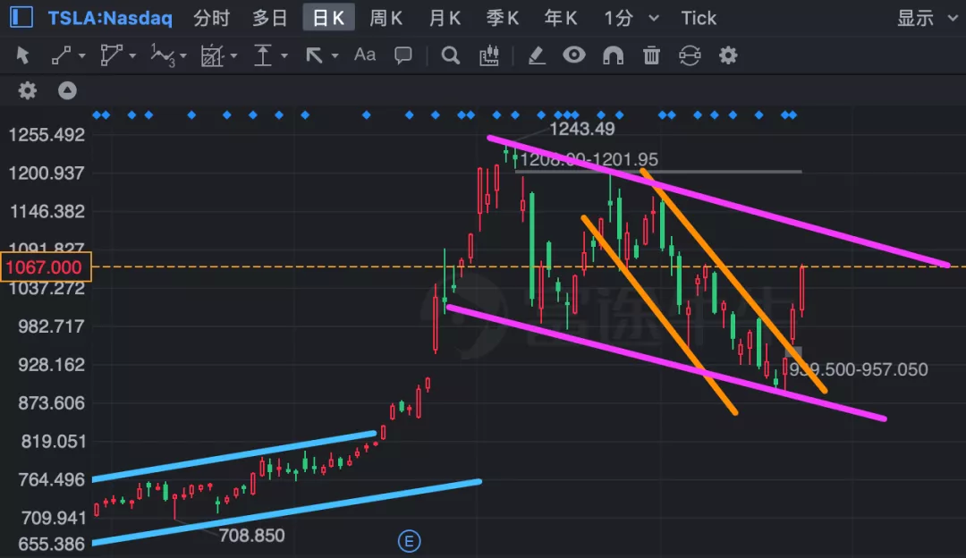 股指之所以能在如此短的時間內恢復上漲動能,特斯拉(106758.13, 5.76%, ) (TSLA.US)可以說居功至偉,在週一回踩箱體下沿支撐之後,這家公司一口氣從886美元反彈到1067美元,上漲近20%。 特斯拉的強勁復甦,也帶動了股指的強勢上攻。