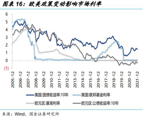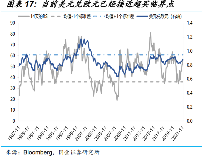 中期,美元走勢的影響變數中,關注經濟體之間疫後政策退潮的節奏,尤其歐美之間,重點關注歐美貨幣政策退出節奏。 根據歐洲央行2021年12月公佈的最新預測,2022年通膨率平均水準為3.2%,遠高於去年9 月預期的1.7%,歐洲央行管理委員會委員表示,歐央行2022年應開始退出負利率和非常規貨幣政策,或意味著歐洲貨幣政策正常化的步伐未來將有所加快。