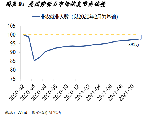 (3)技術指標顯示,當前美元匯率已接近超買的臨界點,"見頂"在即跡象已現。 眼下離岸美元兌歐元已接近超買的極值;美元非商業凈持倉數量領先美元指數3個月左右,該指標指向美元或將在2022年2月前後見頂。 基本面框架,美元未來走勢,受疫后經濟與政策變化的影響重大;短期主要看疫情演繹,中期看政策演化路徑。