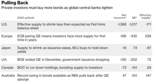 2022年,隨著各大央行撤出寬鬆政策,料將有大量的政府債券供應衝擊私人投資者,這或將進一步刺激收益率走高。