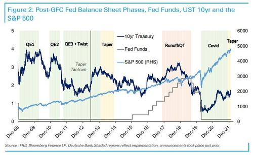 因此,德意志銀行分析師 Jim Reid 認為,2017-2018 年底的 QT 對整體股市幾乎沒有任何影響,如下圖所示: