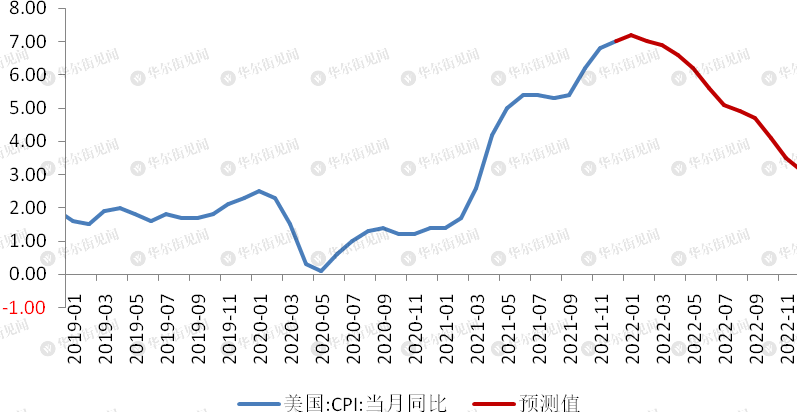 因而美國通脹水準大概率將在2022年1月見到最高值,如果能源價格反覆的話,可能會出現在2月。