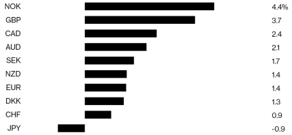 注:除了日元,十國集團的所有貨幣兌美元都有所升值