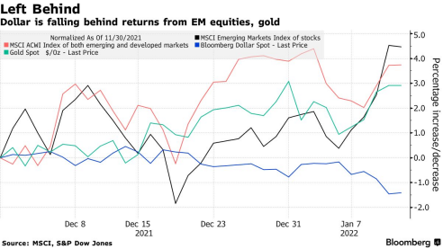 基金經理們指出,隨著全球經濟展露出強勢的復甦勁頭,拋售美元並將資金投入新興市場股票和黃金等資產或是更佳選擇。