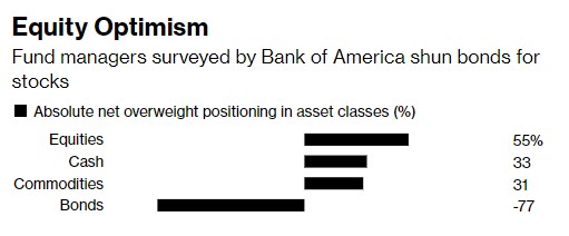 美國銀行(46.26-1.65, -3.44%, )的一項調查顯示,全球基金經理預計今年的通貨膨脹率將下降,並且正大手筆地押注大宗商品和股市將雙雙繁榮。