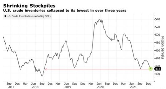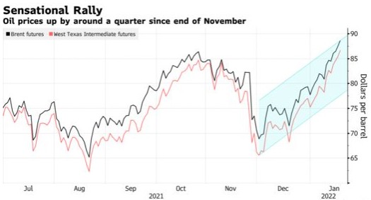 顯然,高漲的需求、omicron擔憂的消退以及OPEC+無力提高產量,這些因素都支撐了油價的大幅上漲。