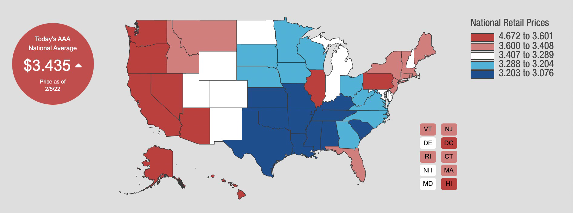 儘管拜登總統正努力抑制油價上漲,但當地時間2月5日,根據美國汽車協會(AAA)最新的燃料數據,美國加油站的平均汽油價格已經上漲至3.435美元/加侖,這是美國自2014年9月以來的最高水準。