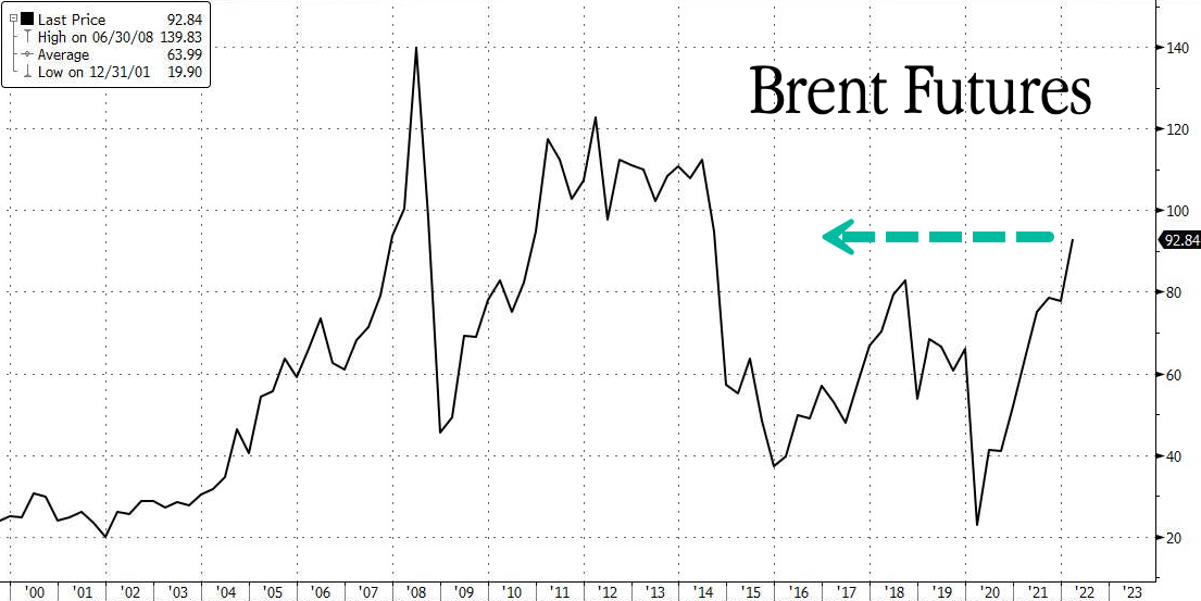 烏克蘭問題也導致地緣政治風險溢價上升,並將布倫特原油價格推高至超過92美元/桶。