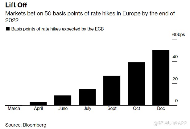 市場押注歐洲央行到2022年底將加息50個基點