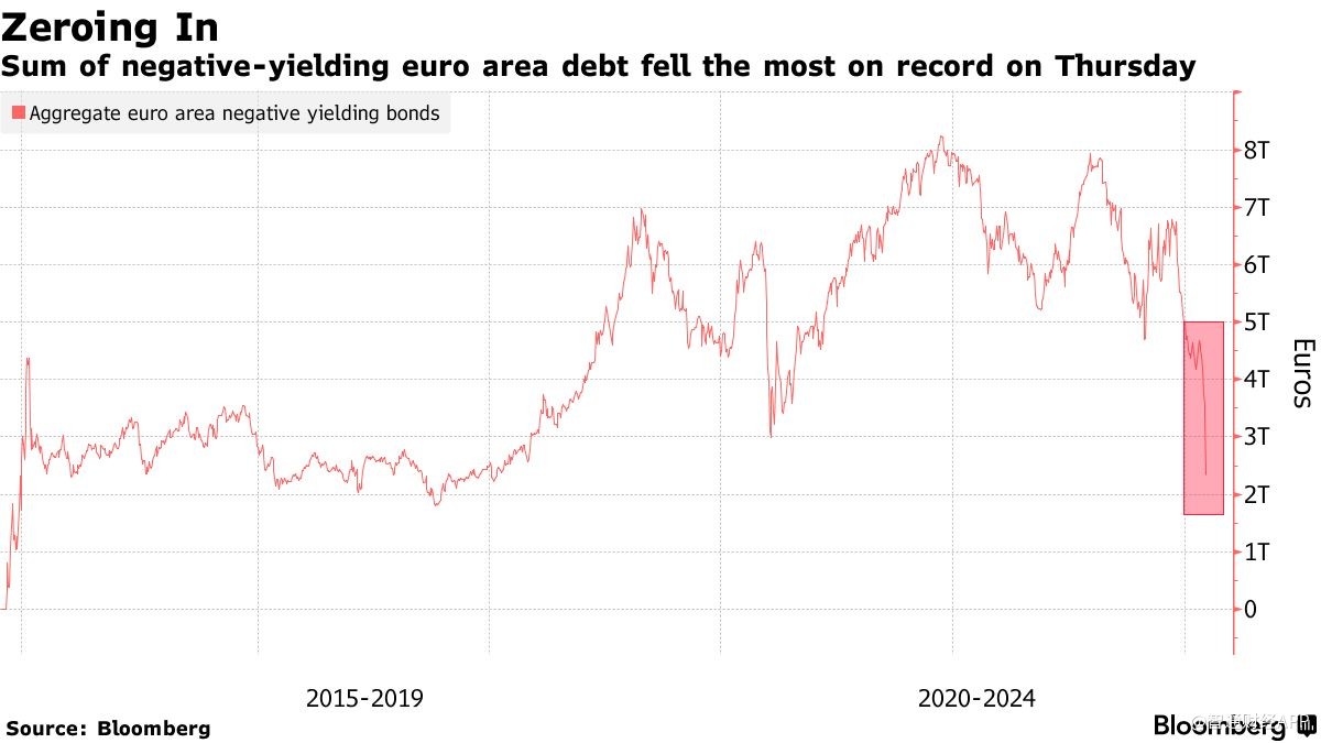 在歐洲央行會議結束后,歐洲負收益債券規模僅在上週四一天就下降了近三分之一,創下有史以來最大單日跌幅。