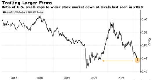 Kostin稱,經濟復甦路徑「有助於解釋過去兩年羅素2000指數的回報率,並顯示出該指數將在2022年繼續落後」 。