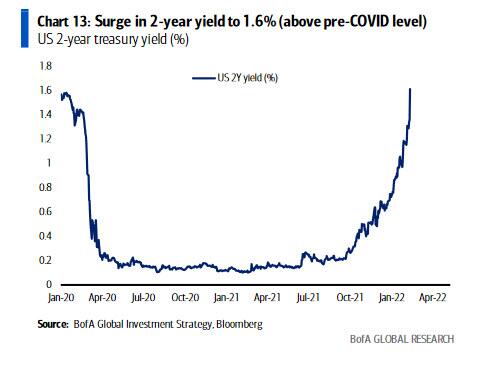 近期,2年期美债收益率激增至1.6%,超过了疫情前的水平。